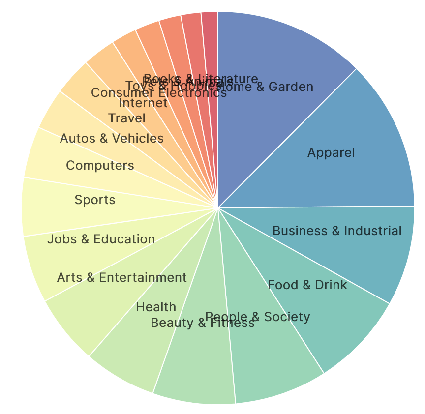 La clientèle cible est donc assez diversifiée. Elle inclut toutes personnes et entreprises qui souhaitent créer et gérer une boutique en ligne, des propriétaires de petites et moyennes entreprises, aux détaillants traditionnels, développeurs web, agences et entreprises de services. Voici la répartition des secteurs d’activités ayant un site avec WooCommerce selon une récente étude menée par Store Leads.