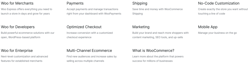“Tout ce dont vous avez besoin pour lancer une boutique en ligne en quelques jours et la faire prospérer pendant des années. De votre première vente à des millions de revenus, Woo est à vos côtés” vente Automattic.