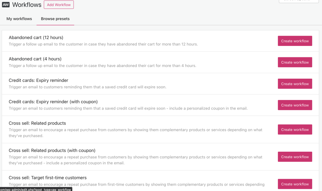 Vous pouvez choisir la façon dont vous souhaitez surveiller votre trafic en créant vos propres rappels ou en personalisant ceux qui sont proposés par AutomateWoo.